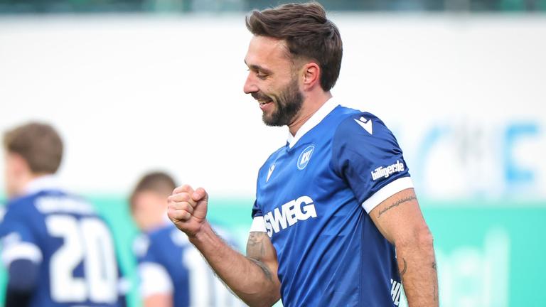 Doch die Partie war noch nicht gelaufen. Weitere vier Minuten zogen ins Land und auch Gästestürmer Celar traf zum dritten Mal, nachdem Marcel Beifus ins Leere lief. Es entwickelte sich ein rassiger Kampf bis zum Ende der Partie, doch der KSC verteidigte leidenschaftlich, verhinderte Schlimmeres und hatte durch den eingewechselten Ben Farhat die Riesenchance zur Entscheidung.