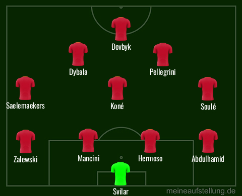 Die Roma sucht nach wie vor nach dem richtigen System und so testete man in Turin zum ersten mal die 4-5-1 Formation. Dovbyk rückte zurück in die Startelf, unterstützt von Dybala und Pellegrini dahinter.
