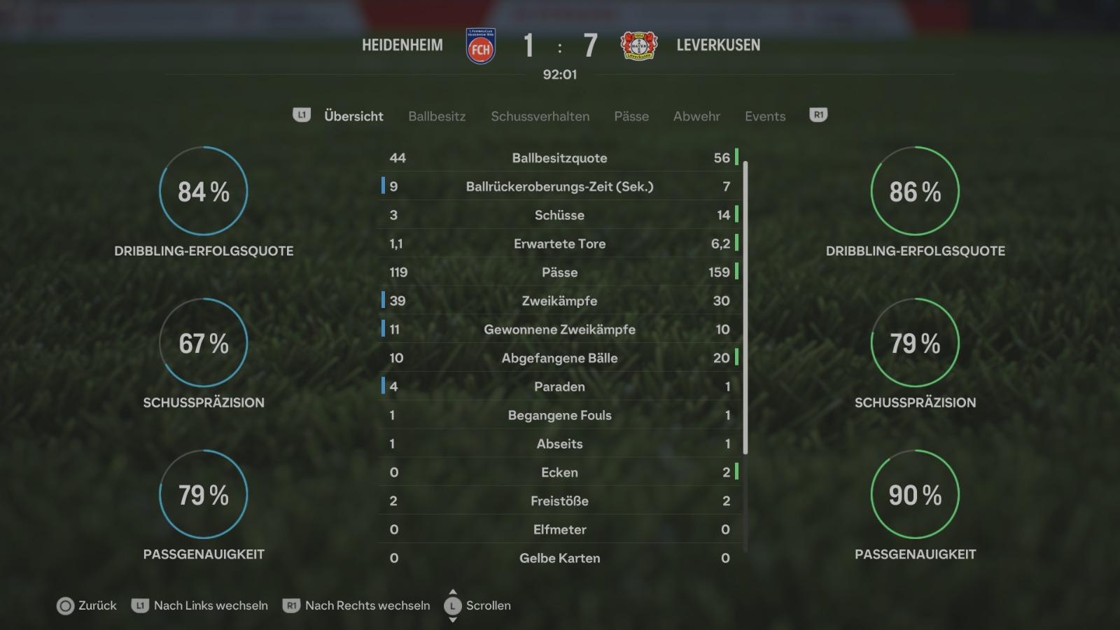 Der amtierende deutsche Townmeister besteht auch die Aufgabe in Heidenheim mit bravour. Boniface (2x), Wirtz und Xhaka sorgen für die angenehme 4:0 Führung zur Halbzeit. Positiv zu erwähnen ist, dass sich Heidenheim trotz des Rückstands niemals aufgegeben hat und munter weitergekämpft hat.