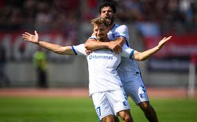 Es sollte einfach nicht sein in den Topspielen... der KSC war zweimal definitiv ebenbürtig und slapstickte sich vor allem im Rückspiel zur Niederlage. Der erste Sieg von Magdeburg ging durch die Effektivität noch in Ordnung, beim Rückspiel im Wildpark hätte der KSC etwas mitnehmen müssen. So konnte man den 1. FCM nicht auf Distanz halten und geht jetzt vier Spiele vor Schluss im Gleichschritt - mit Vorteil Magdeburg aufgrund einer deutlich besseren Tordifferenz.